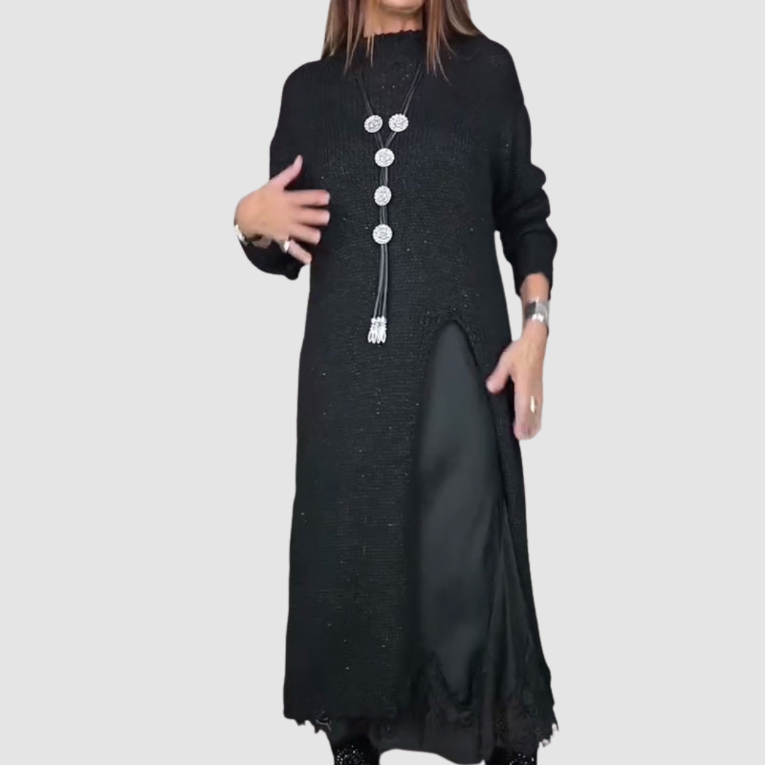 Experience the perfect balance of comfort and style with this beautifully Melyssa™ 2-Piece Set. Featuring a soft pullover over a delicate slip dress, it offers warmth, elegance, and versatility for any season or occasion. A refined look that’s as graceful as it is comfortable.